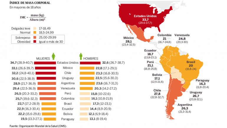 27/02/16. El promedio de Índice de Masa Corporal argentino es 26 y los ubica en el grupo de sobrepeso en la región. Cómo revertir esta tendencia y por qué las mujeres lo sufren más. Una experta lo analizó para Infobae. La obesidad en el mundo es una pandemia. Y Argentina no está exenta. Según el mapa de
