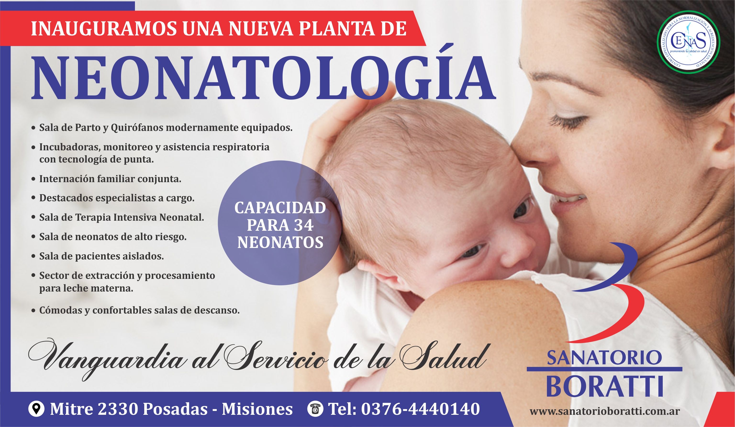 27/02/18. El servicio pone a disposición de la comunidad 34 unidades para la atención del recién nacido, con sectores de terapia intermedia, intensiva e internación. Se duplica de este modo la capacidad que actualmente ofrece la institución.Acompañado del gerente del Sanatorio Boratti, el doctor Roberto