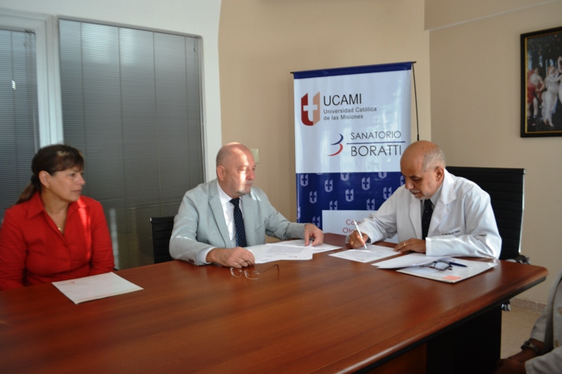 12/04/18. Se firmó en las instalaciones del sanatorio Boratti, un convenio con la Universidad Católica de las Misiones, mediante el cual alumnos de la cátedra de Otorrinolaringología de quinto año, podrán hacer prácticas en el sanatorio, al igual que los alumnos de primer año de la materia Primeros Auxilios